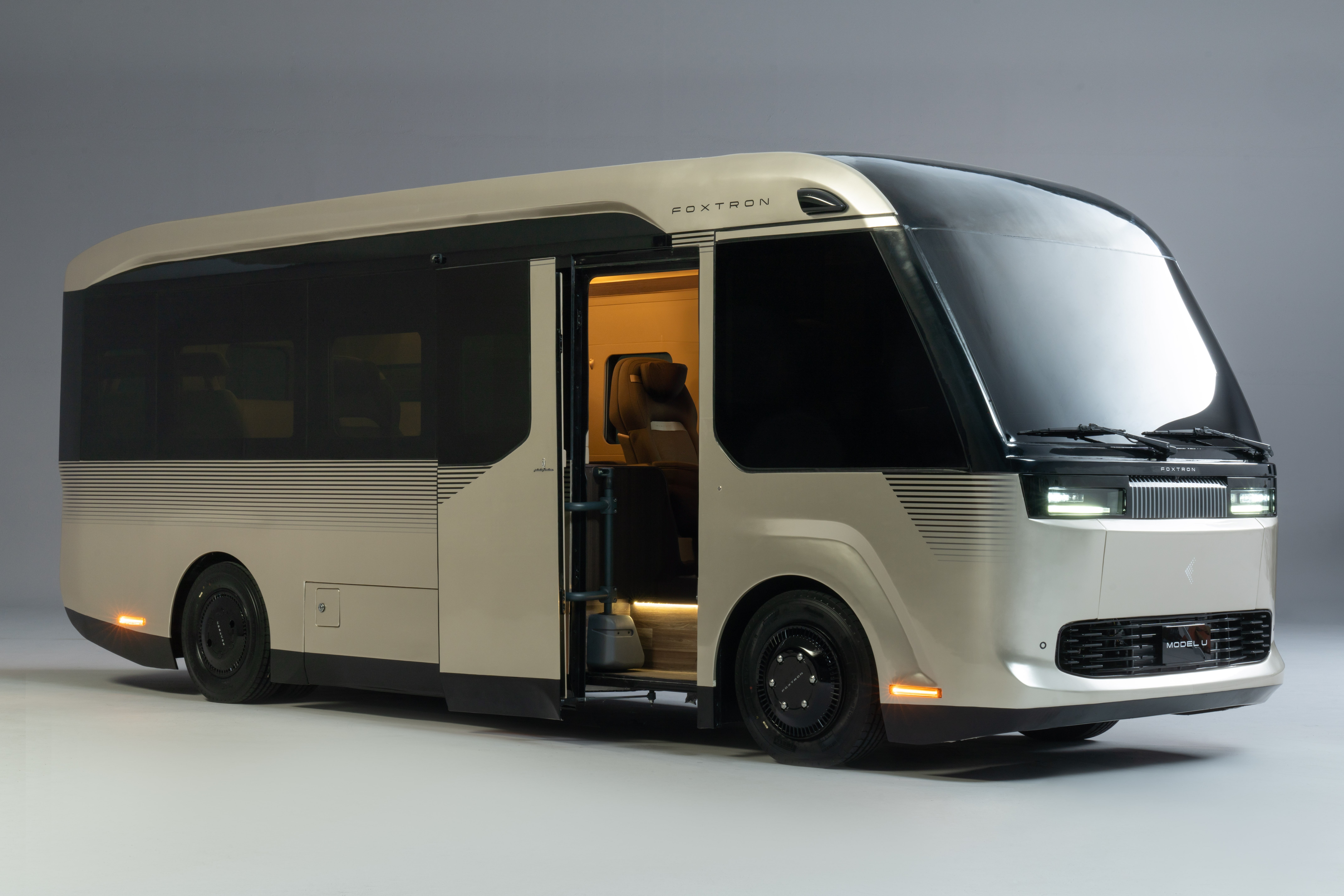 緊接著登場的MODEL U原型車主打商務接駁需求,延續MODEL T簡約科技設計風格,採用純粹美學理念。傾斜向上的車頭設計,高級乘用車的圓滑曲線,有助於降低風阻提高能耗效率,車尾折角對開式尾門設計,整體方正不失圓潤,簡約線條勾勒出MODEL U專屬風格。